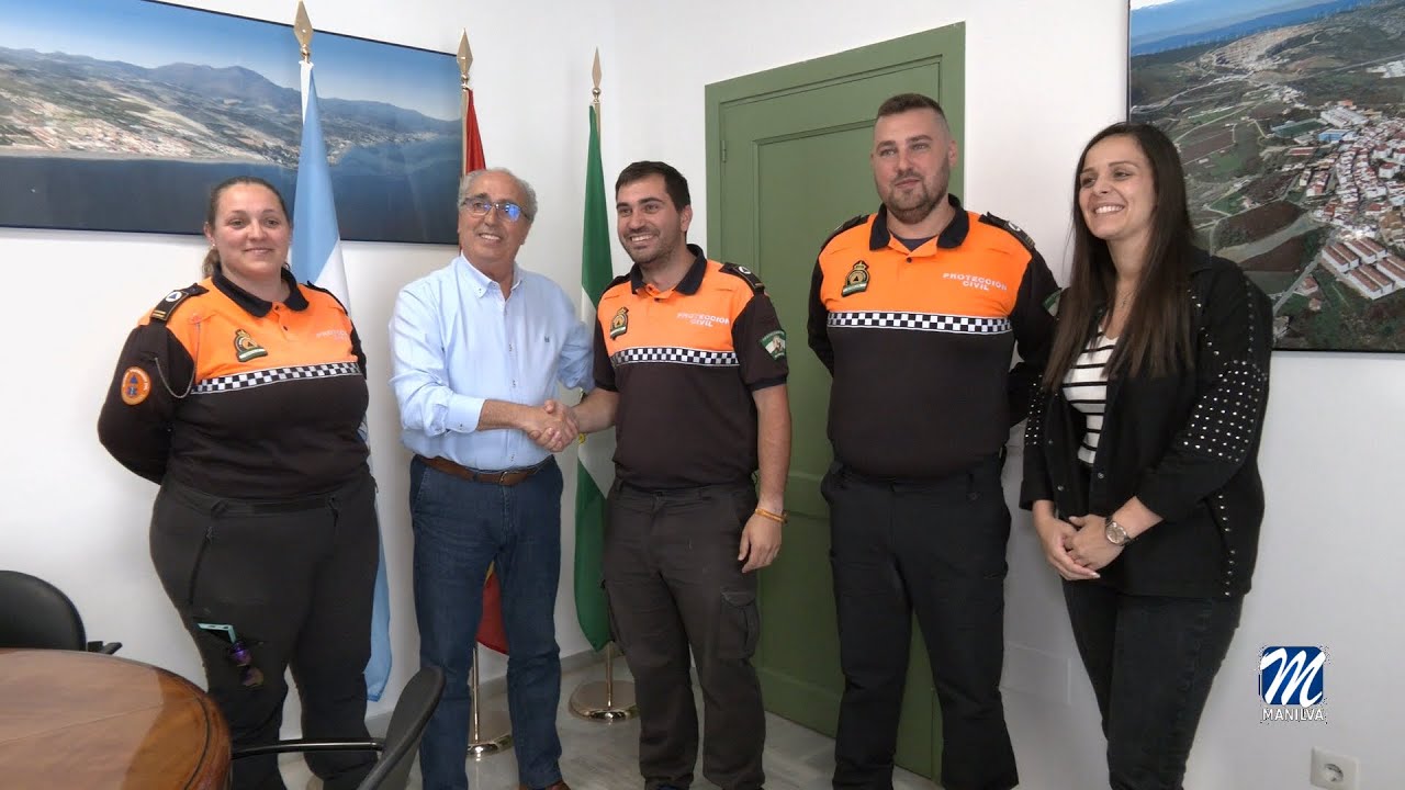 Por ello, el alcalde de Manilva y responsable de la Seguridad ciudadana, José Manuel Fernández, y la concejala de Bienestar Social, Gema Zotano, se han reunido con integrantes de Protección Civil para este reconocimiento institucional.