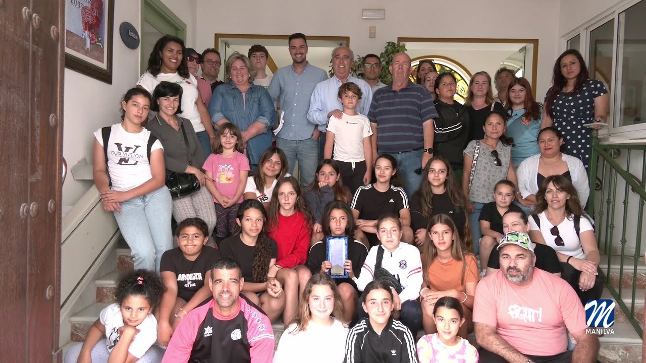 El 23 de mayo se celebra el Día Internacional del Fútbol Femenino. Por este motivo, el alcalde de Manilva, José Manuel Fernández y el edil de Medios de Comunicación, Juan Carlos Morejón, han recibido al coordinador y directivo de la U.Manilva C.F., Antonio Márquez, a las integrantes del equipo femenino, cuerpo técnico y familiares, para hacerles una mención por su contribución a la igualdad y a la integración.
