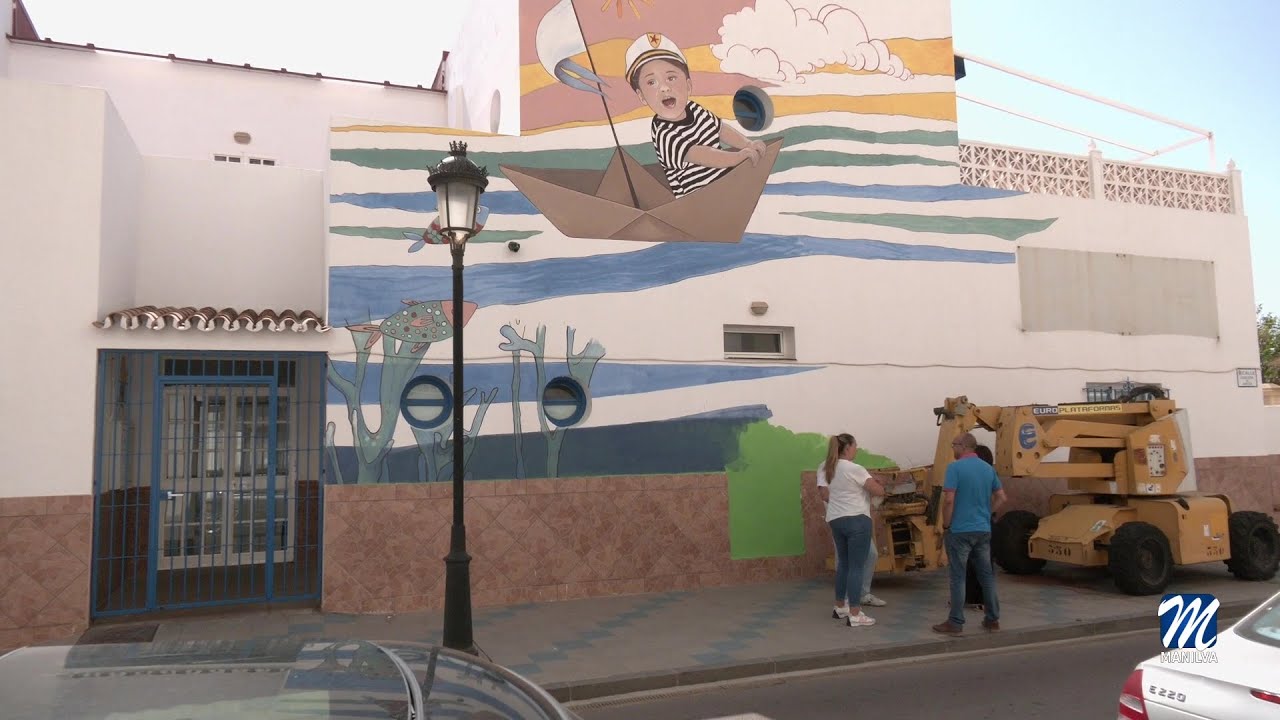 Vecinos y curiosos hacen parada obligatoria para admirar otro de los murales que muy pronto estará finalizado. Nos referimos al nuevo trabajo de la artista María José Gil, que realiza en estos días en la fachada de la Escuela infantil de Sabinillas, en calle Duquesa de Arcos.