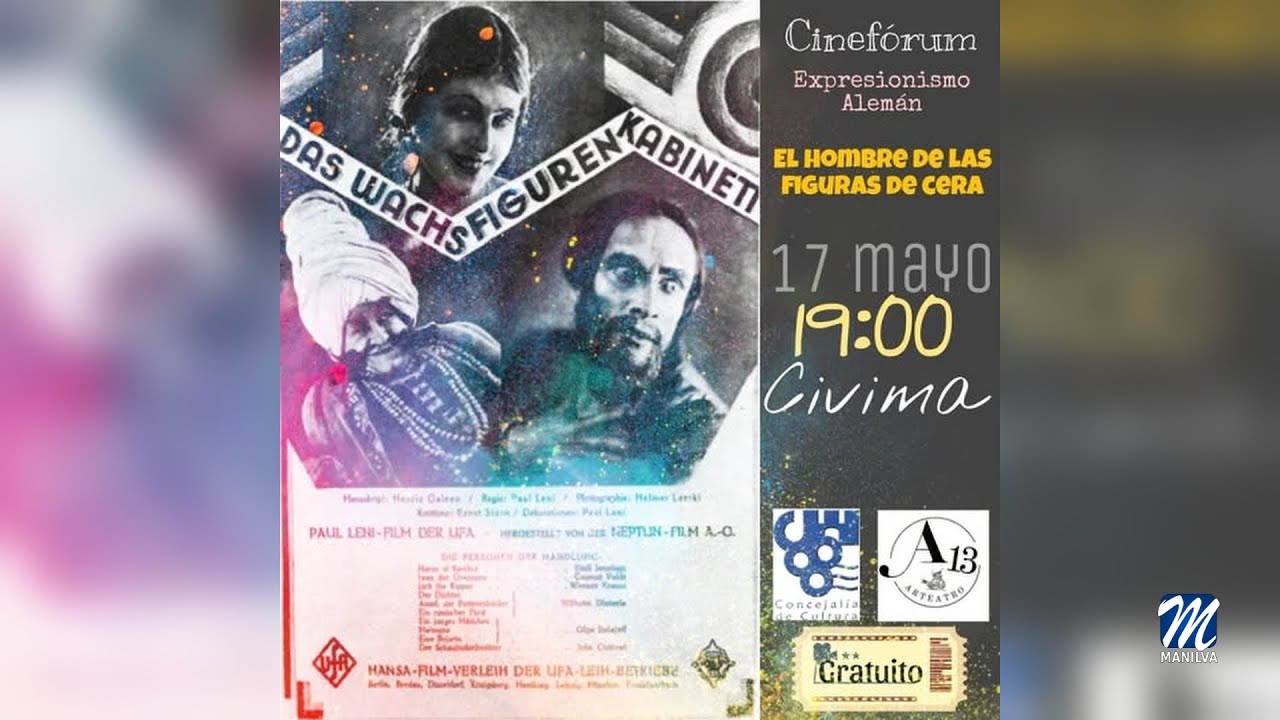 La cinta elegida ha sido ‘El hombre de las figuras de cera’ de 1924, después de la proyección se procederá al coloquio en el que todos los asistentes podrán participar. En esta película dirigida por el alemán Paul Leni, cuenta la historia de un hom,bre que acepta escribir un libro sobre las figuras de cera que expone en una feria, entorno a esta trama se mezclará el terror con lo fantástico, dando lugar a una de las películas más destacadas de su tiempo.