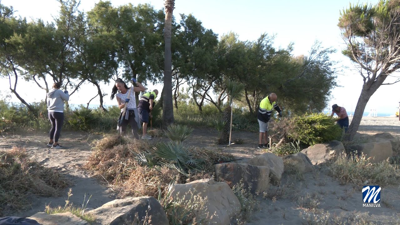 El Ayuntamiento de Manilva trabaja en la adecuación de nuestras playas de cara a la próxima temporada estival. A los trabajos de limpieza realizados de manera diaria por los trabajadores de la delegación de Playas, dirigida por Gema Zotano, se suman los arreglos de los oasis, como el ubicado en la zona de La Noria.